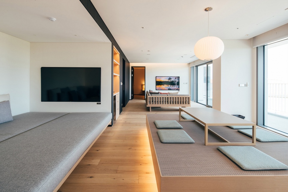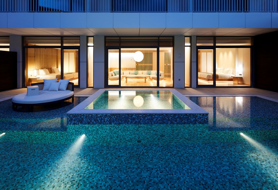 标准的客房共有两个部分,分别为一间带有露台与落地窗的宽敞客厅,以及一处独特的温泉浴室。温泉浴室的布局种类尤为丰富,为旅客们提供了个性化的选择。从建筑设计的角度来看,本项目中设有一间颠覆人们传统概念的豪华温泉浴室,一系列可以自由进出客厅的宽敞露台,一处让人想要狂欢畅饮的开放式厨房,还有一间能够让人感受到传统氛围的茶室。