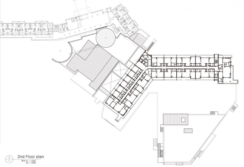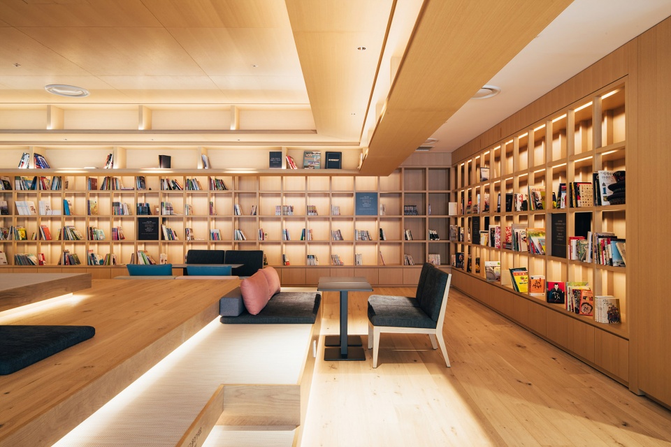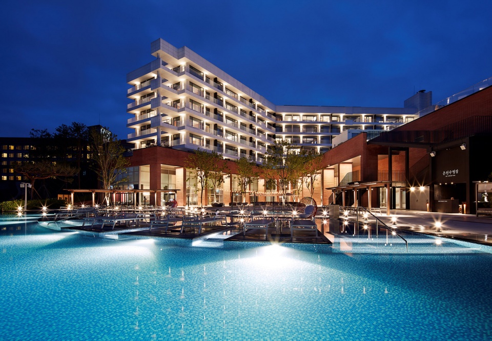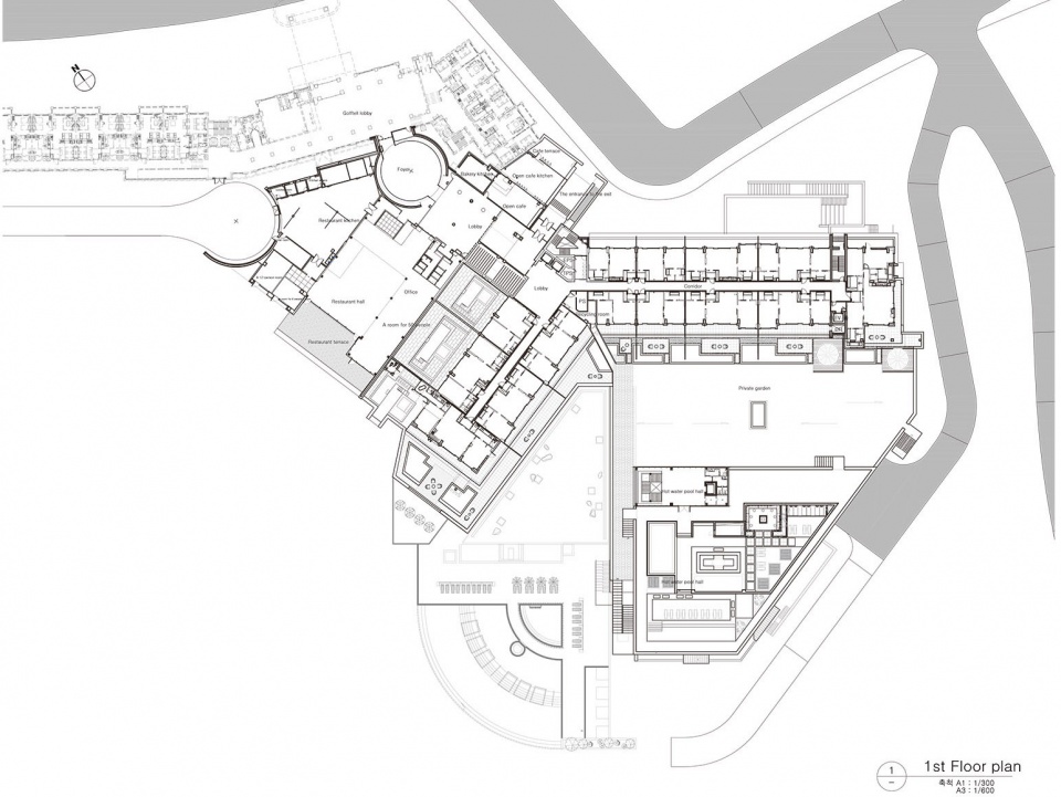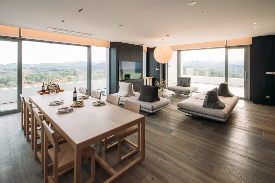 温泉酒店顶层是一间拥有极佳景观视野的公共活动大厅,这里是整个度假村中独一无二的观景胜地,客人们可以在这里观赏到日出的美景。景观是整个项目设计中最为重要的考虑因素之一,旨在保证人们在室内空间中依然能够欣赏江原道的美丽山景与风景。