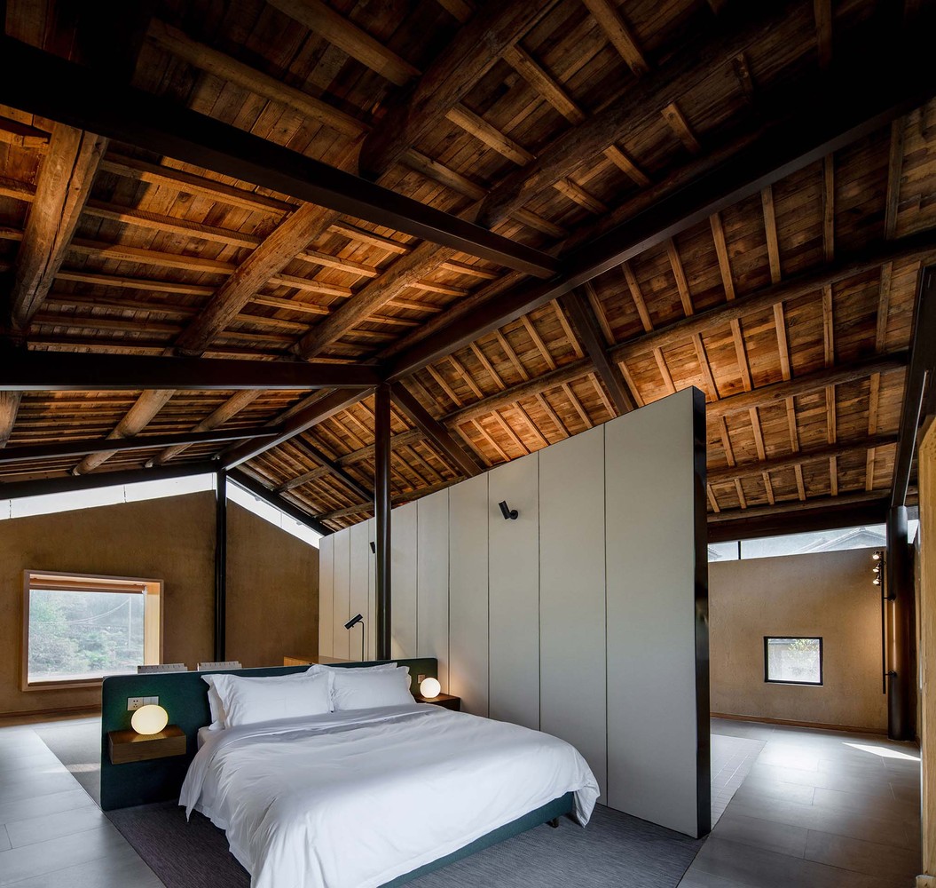 我们的设计思路是,用温和的手法对已有建筑进行现代化改造,同时增强其与周围景观之间的连接。原来的墙壁、门窗在当地匠人的努力下悉数保存并得以修复,而我们在墙壁中增加了钢结构来修复屋顶,屋顶结构和装饰都采用了传统的技术和材料。室内增添的元素作为物件独立于旧元素,让客人可以清楚地“读”出新旧关系。