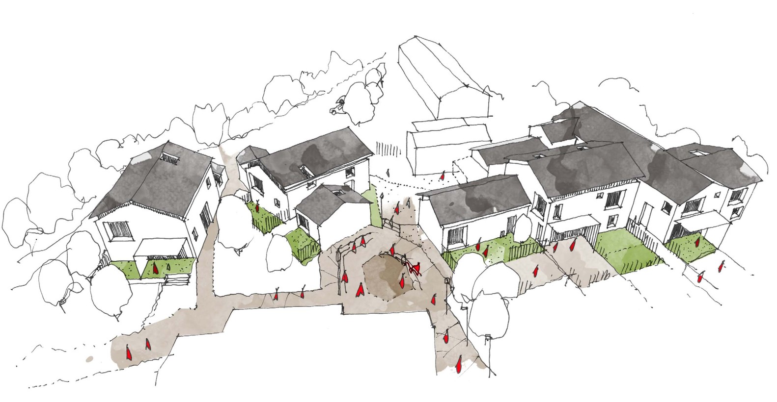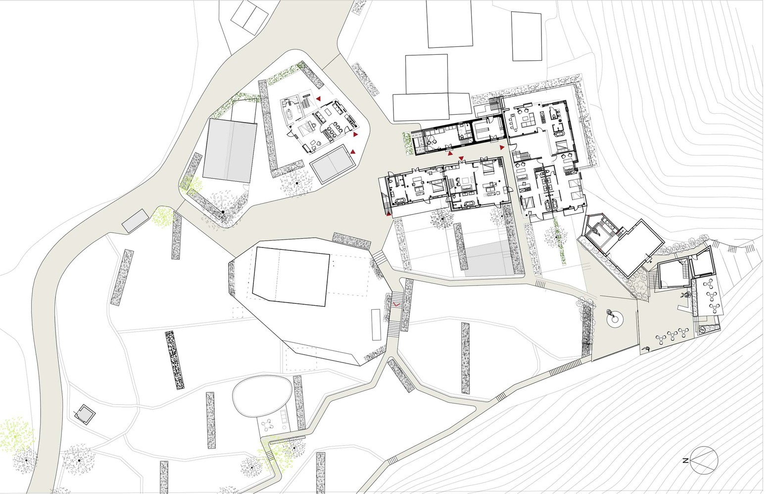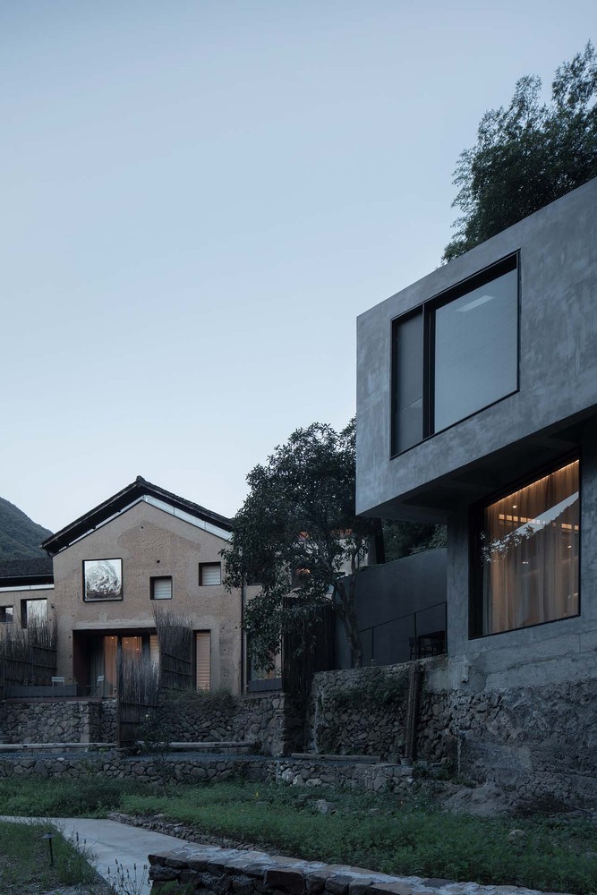 初访基地时,我们被已有建筑以及其处于的大自然生态所深深吸引。在这里,建筑之间的距离非常紧密,通过一条小巷串联起来,被竹海包围的这群老建筑,从每一栋看出去都能看到竹子构成的景观。这些建筑呈现出了丰富的历史感,古老的墙面和斑驳的窗户都极富魅力,讲述着他们古老的故事。已有建筑采用的是传统木结构,因此我们思考是否能将其保存的同时使之融合到新的设计中。然而,经过仔细勘察后,我们发现原有的屋顶及建筑结构,因年久耗损,较为脆弱,以致无法修复再利用。且外墙窗户狹小,缺乏充足的自然采光和通风,导致内部氛围沉郁,没有与周遭美丽的竹林、生态环境产生连接。