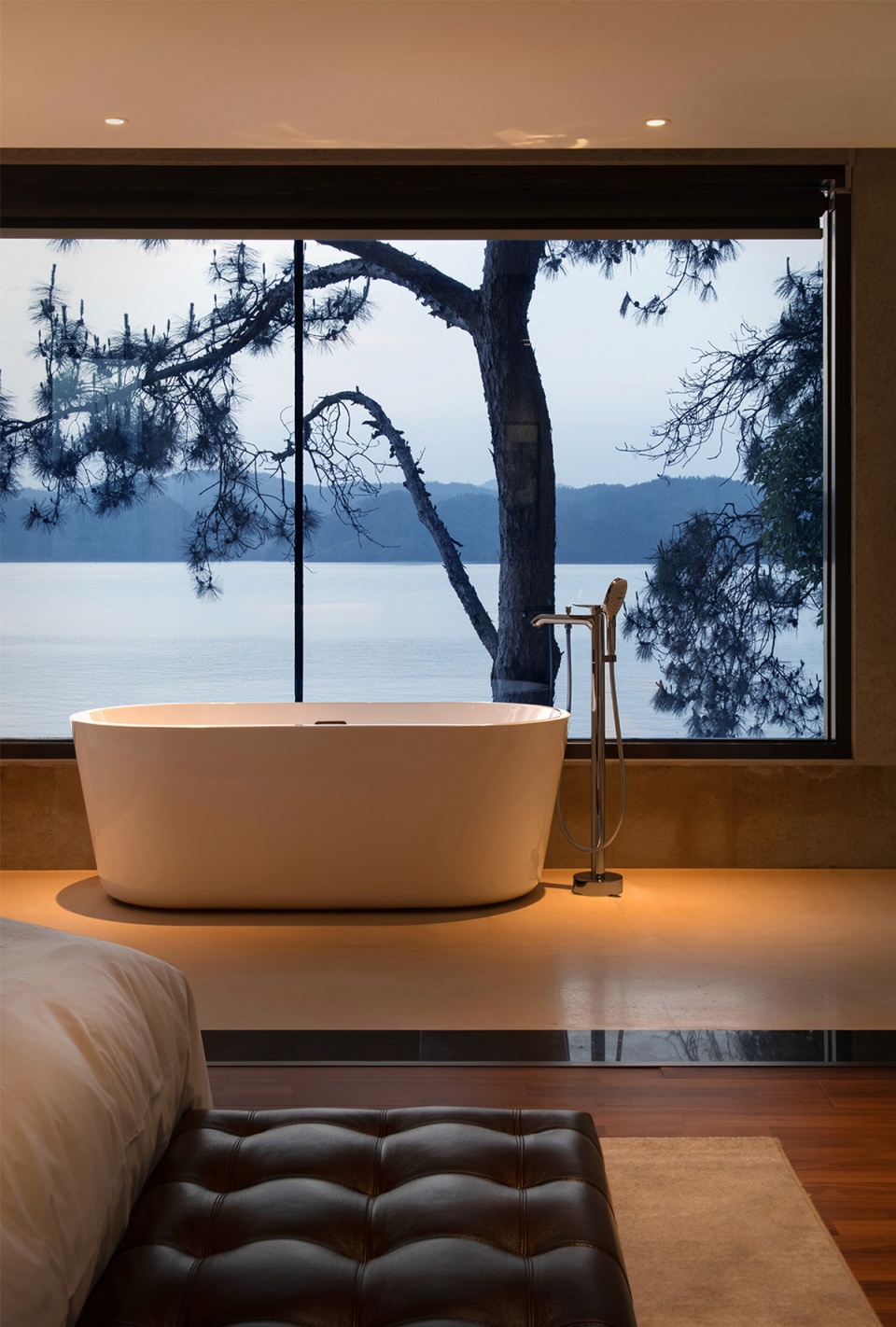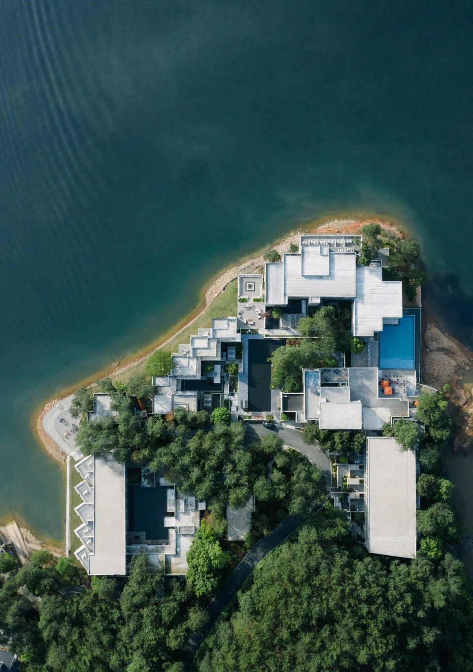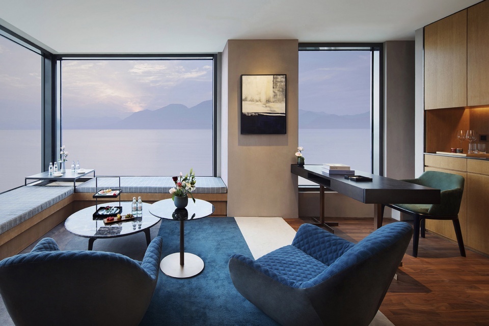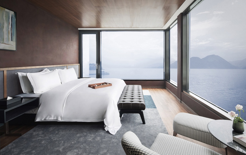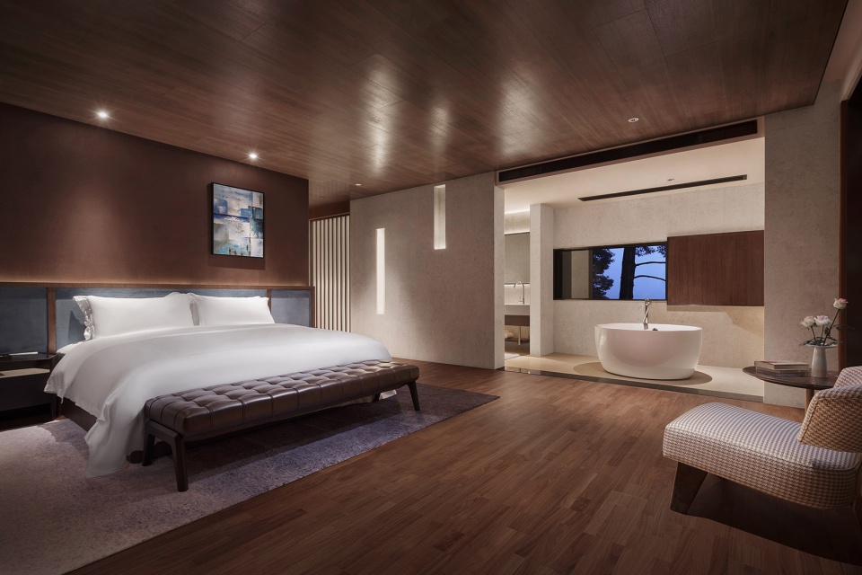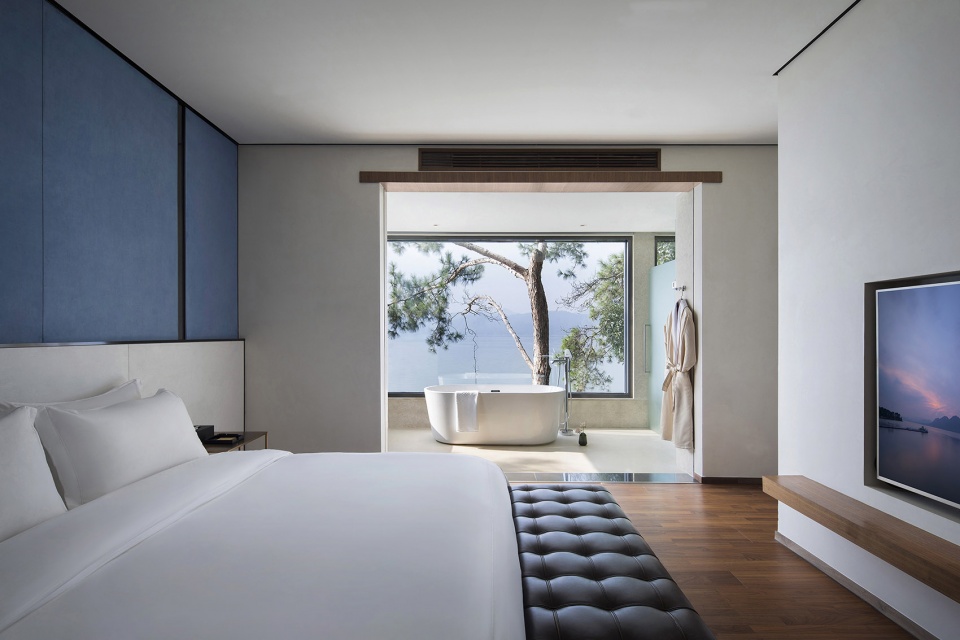 依偎着湖的山水澄澈,酒店成为“东方极简”设计哲学最为浪漫的诠释,也是设计师对于山水自然最为含蓄的情感表达。