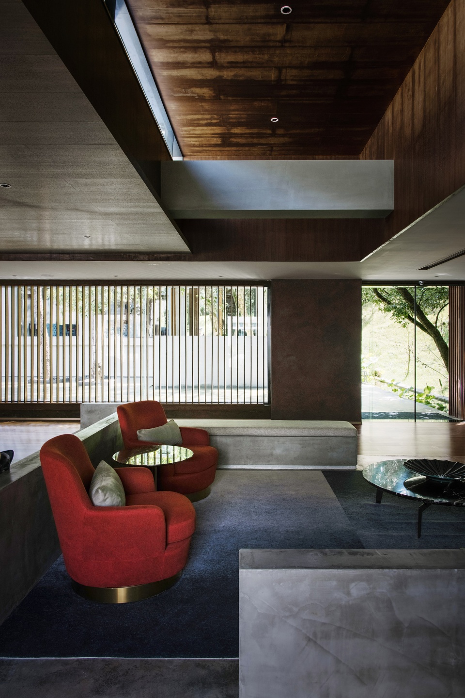 “建筑无相,建筑存有”,交叠的空间让我们难以将建筑室内与景观庭院泾渭分明地分开,这种边界的模糊性为建筑增添了朦胧的诗意,消解的割裂感使自然与建筑之间达成了一种非连续的连续性。