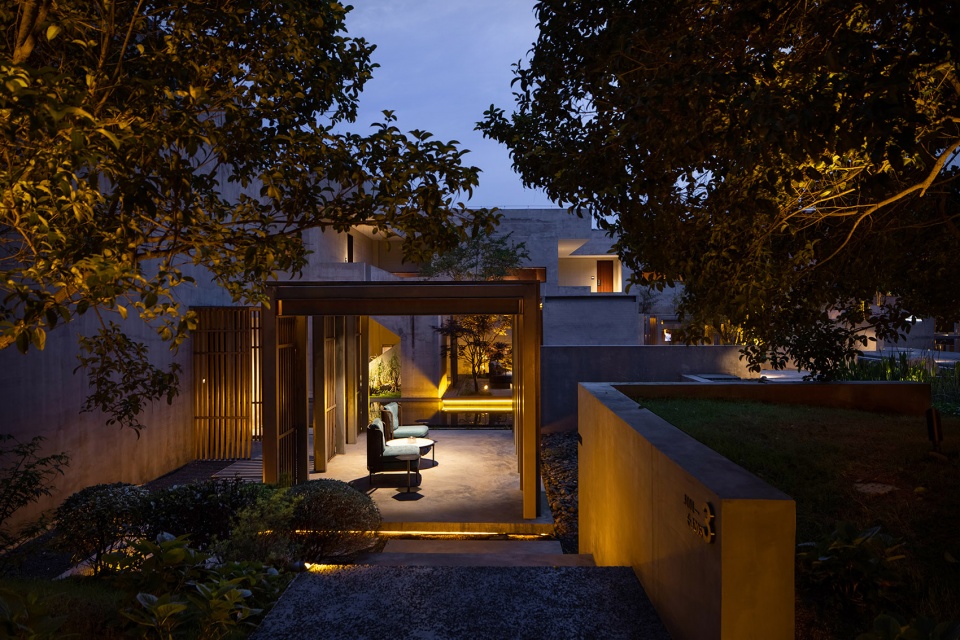 在酒店规划上,酒店退公路10米而居,退繁华,而入山水,用以减少来往车流的嘈杂,亦更贴近“奢隐”的调性与设计风格。