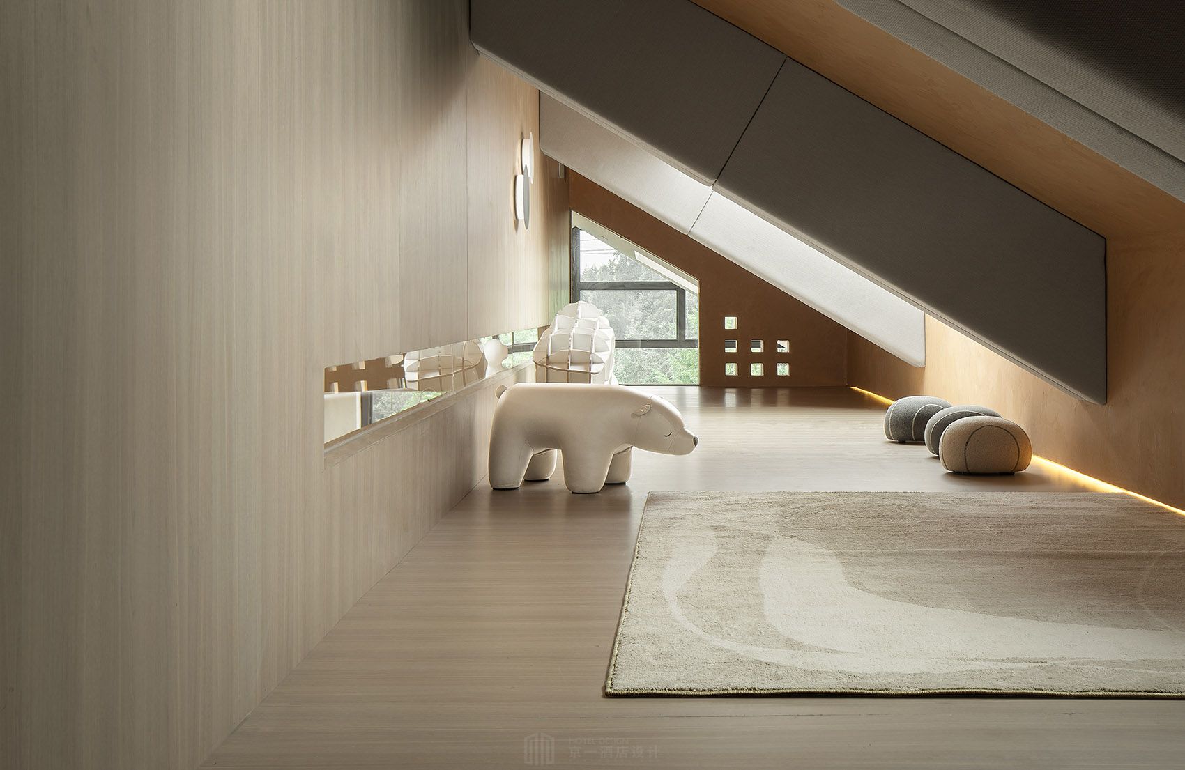 但凡用心,必然平淡中见惊奇。基于建筑的可持续性与环保性,拉近人与空间的距离,让材质本身去呼吸。设计师耗费大量时间与供应商协作研发用砂石与当地特殊石子混合的方式制作新型椒墙涂料。耐腐耐潮,温润自然,融入于本土环境,共生共息。