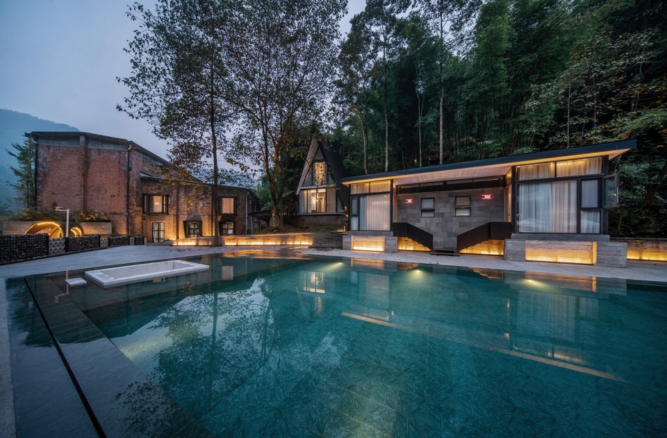 项目位于成都市大邑县雾山乡的深山中,是改革开放初期三线建设遗留的厂房。为满足业主方诉求,我们将其改造为一座精品酒店。改造后的酒店有21间客房,建筑面积3000平方米,包括全日餐厅、咖啡厅、酒吧、多功能厅、会议室、棋牌室、露天温泉、景观泳池等配套娱乐设施。
